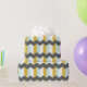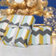 Moden geometric pattern with mint green, mustard yellow, white and grey stripes.