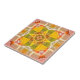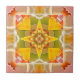 A modern tile featuring a geometric abstract design with floral star and heart elements in warm sunny colours. Perfect for kitchen or bathroom and as the design is large enough, you can also choose the large tile size.