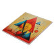 Geometric Symbols Abstract #08. An enigmatic blend of triangles, circles, and arcs dance amidst a dreamscape of subtle blues, yellows, and oranges in this mesmerising abstract masterpiece.