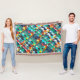 Geometric Triangle Yellow Mint Navy Orange and Aqua Modern Modern Pattern Add Any Text - Custom Text Sofa Blanket Click Customise to Add Monogram or Family Name or Beach House Name or Cottage Name
