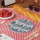 Geometric Triangle Pattern Blue Violet Green Paper Plate