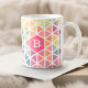 Brighten your day with this colourful pastel triangle patterned mug with a monogram. The pattern features pinks, yellows, greens, blues, and purples.