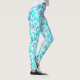 These leggings feature a curvy geometric pattern in teal and turquoise on white. This pattern comes from a tile design.
