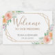 Wedding welcome sparkling wine label in geometric watercolor flower design pattern.
