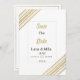 Sleek and modern, these geometric minimalist wedding Save the Date invitations showcase crisp white and gold with black typography on a clean, neutral backdrop. Designed for the contemporary couple, they blend simplicity with elegance. The refined design lets your love story shine. Fully customizable to match your wedding vision.