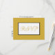 Gold colour backgrond on front with RSVP written in gold colour script against white and black geometric recetangle. Personalise backside with reception party food choice and other details. Food allergies note at bottom (keep as is, or delete). Original Design by TamiraZDesigns.