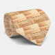 Geometric wooden panels are arranged against a textured sand backdrop, creating a visually interesting contrast between the smooth wood grain and the fine sand