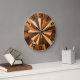 Celebrate timeless artistry with this geometric wooden mosaic clock design, where natural tones meet bold Roman numeral accents. The radial arrangement creates a striking visual rhythm, blending rustic warmth with modern sophistication. Perfect for those who appreciate unique craftsmanship, abstract aesthetics, and elegant statement pieces, this design embodies creativity and individuality.