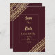Geometrical burgundy gold typo Save the Date Invitation