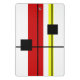 Modern art abstract geometrical design with black, red, yellow lines and black squares on white background