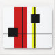 Modern art abstract geometrical design with black, red, yellow lines and black squares on white background