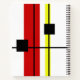 Modern art abstract geometrical design with black, red, yellow lines and black squares on white background