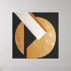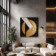 An abstract composition merging a golden circle, dark triangle, and white stripe in elegant contrast. The artwork conveys balance between strength and subtlety, exploring the dialogue of geometric forms, light, and shadow, evoking modernity and timeless sophistication.