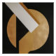 An abstract composition merging a golden circle, dark triangle, and white stripe in elegant contrast. The artwork conveys balance between strength and subtlety, exploring the dialogue of geometric forms, light, and shadow, evoking modernity and timeless sophistication.