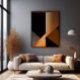 Lines and shapes intersect in a dialogue of contrasts between shadow and light. The abstract composition in shades of orange, black, and copper conveys balance and intensity, unveiling the beauty of geometric precision turned into visual art.