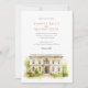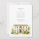 Announce your special day with this sophisticated watercolor wedding invitation featuring the magnificent George Peabody Library in Baltimore. The artwork beautifully captures the grand, classical architecture of this iconic venue, rendered in soft, warm creams and beiges. The scene is elegantly framed by stylised light green trees, some with delicate yellowish-green leaves, and manicured green lawns. Details like the classic black lampposts, a prominent terracotta-coloured garden urn, and the welcoming pathway add to the charm. This invitation, with its refined watercolor style, evokes a sense of timeless elegance and literary romance, perfect for a distinguished celebration. The front presents your wedding details with classic typography, while the reverse side offers "The Finer Details" for additional guest information. The colour palette includes stately creams, soft beiges, a variety of fresh greens, hints of yellowish-green in the foliage, classic black, and warm terracotta.