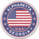Alpharetta sticker with American flag colours rounded shape.
