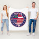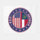 Badge of Georgia with flag of Georgia and flag of USA colours, rounded shape.