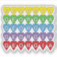Do you like fun stickers? This sticker has a pattern of yellow, green, blue, purple and red hearts that spell out the US state, Georgia.