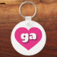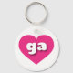 This key chain features a vibrant hot pink heart containing the bold, white, rounded lower case letters ga, a playful abbreviation for the state of Georgia, the peach state.