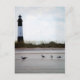 Tired of flying in the salty air, the seagulls take a rest on the sand before a looming lighthouse. Don't forget to add matching postage!