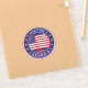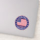 Milton sticker with American flag colours rounded shape.