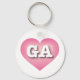 This key chain features a pink heart with a white-washed centre containing the bold, white, upper case letters GA, the official abbreviation for Georgia, the peach state.