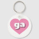 This key chain features a vibrant pink heart containing the bold, white, rounded lower case letters ga, a playful abbreviation for Georgia, the peach state.