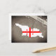 Postcard with an outline of Georgia, coloured in the design of the national flag.