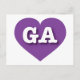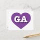 This postcard features a vibrant purple heart containing the bold, white, upper case letters GA, the official abbreviation for Georgia, the peach state. The reverse side of the postcard is blank, awaiting your customised text or handwritten sentiments.