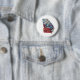A button featuring an original painting of the Georgia state flag in the shape of the state.