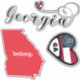 A sheet of 3 different sticker designs, featuring Georgia map and state flag.