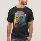 I give wanted to give this a 4 instead of a 5 because these Basic DARK T0shirts run unexpectedly SLIM or Narrow. Which is great if you do not have a potbelly, but I have a paunch. It isn't the shirt's fault that I've got a beer belly. The design and shirt itself is a quality cotton shirt. The color is more of a deep purple, but still a very pretty color. The Basic DARK T-shirts run a bit SLIMMER than the Basic Ts. The neck is a fraction narrower (or seems to be narrower) also. I'm a paunchy middle-aged woman and my neck is 12 inches (31cm) thick and the neckline fell about the same as in the photo of the man, and I had the desire to tug it a bit. So if you're a thick necked man or like loose shirts, be aware these are slimmer shirts. Once I get rid of my lockdown paunch it'll look great. The shirt washed well in cold water with no apparent bleeding. We don't have a dryer, so it hung dry. Did not shrink. Love the colors and the design. The design looks smaller on my shirt than it does on the model on-line. But still, it looks good on the shirt. The printing looks as it does on the model, just the size seems fractionally smaller. Washed garment in cold water, hung dry and design appeared unaffected.