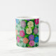Geranium Flowers Coffee Mug. Hand painted and drawn geranium flowers on a coffee mug with a deep green background. Bright and colorful design and part of a collection.