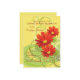 A cheerful invitation featuring three gerbera daisies in a bright red colour. The sunny, yellow background has abstract foliage and swirls. Suitable for any happy celebration.