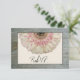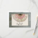 A wedding RSVP featuring an image of barnwood framing the front with an image of a pink and off white gerbera daisy peeking from top of rectangle at centre. Personalise the text on front and back.