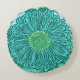 Gerbera Daisy Block Print, Turquoise and Aqua Round Cushion