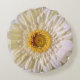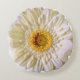 A close up image of a white Gerbera Daisy with gold centre all with crisp detailing pops out on a round decor pillow. For home or garden can be personalised with a name or favourite saying.