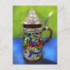 German Beer Stein w/Hinged Lid Blue Green Postcard