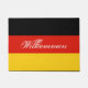 German flag door mat with Germany welcome text for home or store. Make your own custom door mat for country chic home, restaurant, hotel, business, office, company, shop etc. Add your own welcome message, family name, monogram, store name, surname or funny quote. Cute gift idea for new home housewarming party. Custom colour background. Vintage rustic typography. Personalizable doormat sign template. Create your own entry mat / rug for front door / entryway or hall. Customisable home decor / decorations for your house or store. Upload your own image.