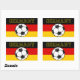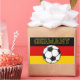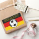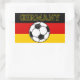 The flag of Germany, tricolour, displaying the national colours of Germany: black, red, and gold. In the middle there is a sketch / scribble style picture of a black and white, soccer ball / football.