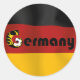 Show your support for the German football team with this design featuring the word, "Germany" with a flaming soccer ball in the letter "G". The letters are made up of the German national colours of black, red and yellow. The German flag is in the background of the design. sgb01