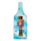 A traditional German wood nutcracker depicting a military officer with a blue and orange uniform. The nutcracker is superimposed on a blue background image with snowflakes. Add your own text.