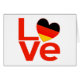 Red letters read "LOVE" with a heart shaped German Flag for the "O". Fun anytime, but especially on Valentine's Day. Great way to share you love of your culture, heritage and ancestry.