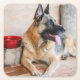 German Sheperd Resting By Water Basin Square Paper Coaster