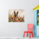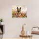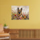 A watercolor painting of a German Shepherd in a vibrant wildflower meadow. Showcasing the beauty of art and nature through detailed brushstrokes and warm colors, this composition radiates warmth and serenity.