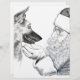 Beautiful original pen and ink of Santa and German Shepherd by Keith Knudson