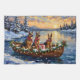 Bring noble, intelligent charm to your holiday season with this majestic German Shepherd Christmas design! This magical scene features three proud, devoted German Shepherds (GSDs) sitting alertly in a cozy wooden boat, gently floating on a serene snowy lake at sunset. The boat is beautifully adorned with glowing Christmas string lights and fragrant pine garlands, while the dogs wear festive scarves. They are surrounded by colorful wrapped presents and cheerful holly branches. Soft snowflakes gently fall, and the shimmering reflection of the lights on the water creates a truly magical winter holiday atmosphere. This design is a perfect Christmas gift for any German Shepherd owner, dog lover, or admirer of festive and impressive working dog art, capturing the serene joy of the season.