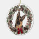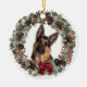 German Shepherd Dog Red Bow Pinecone Wreath Ceramic Tree Decoration