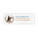 The left side of these return address labels feature an image of a spring flower wreath in colours of soft pink, blue, gold, green and cream. At the centre is a portrait of a beautiful German Shepherd Dog. Tiny gold confetti gives a subtle sparkle to the background. Your custom text is in blue and brown gold at the right.